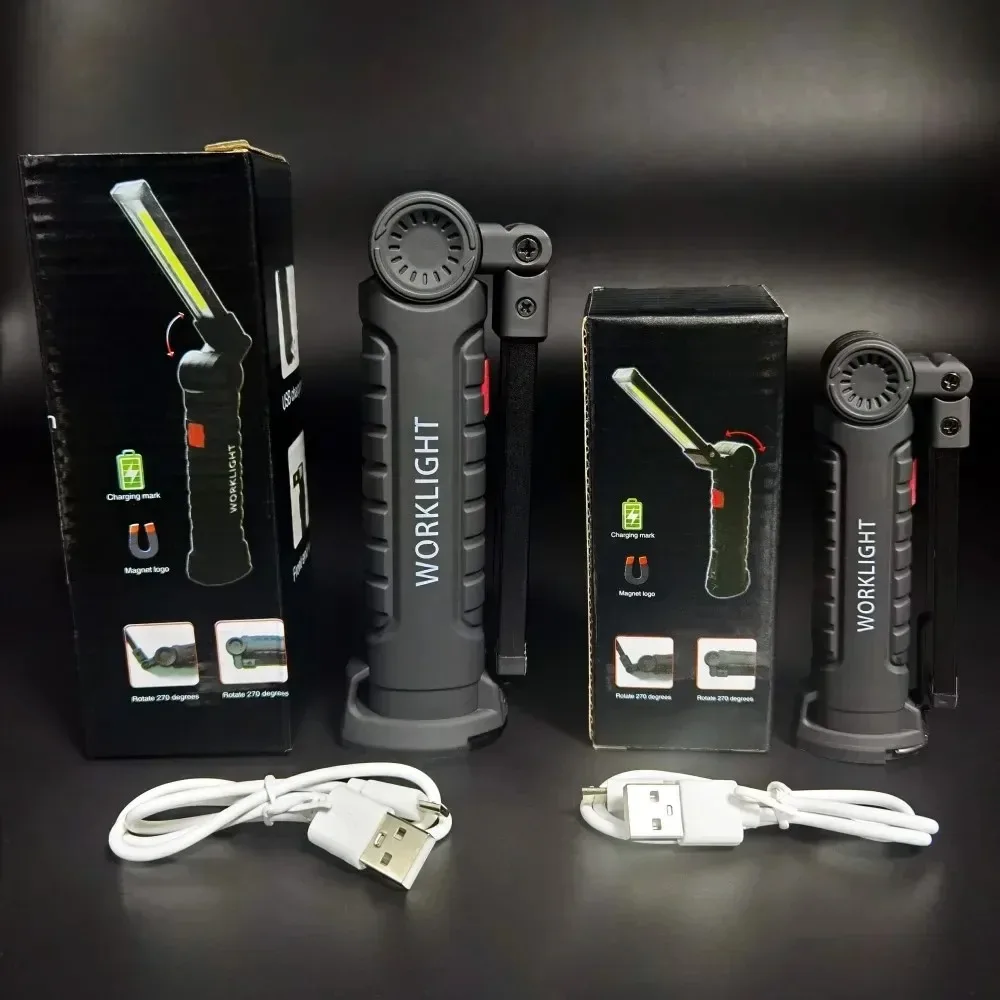 COB LED Folding Flashlight Portable Magnetic Work Light Lantern USB Rechargeable Emergency Repair Camping Torch Lamp With Hook