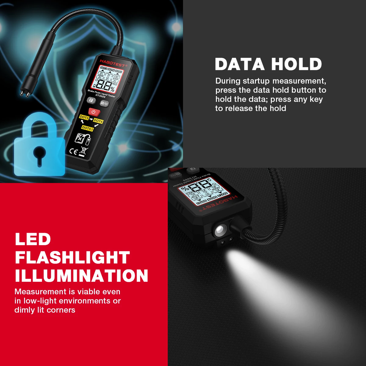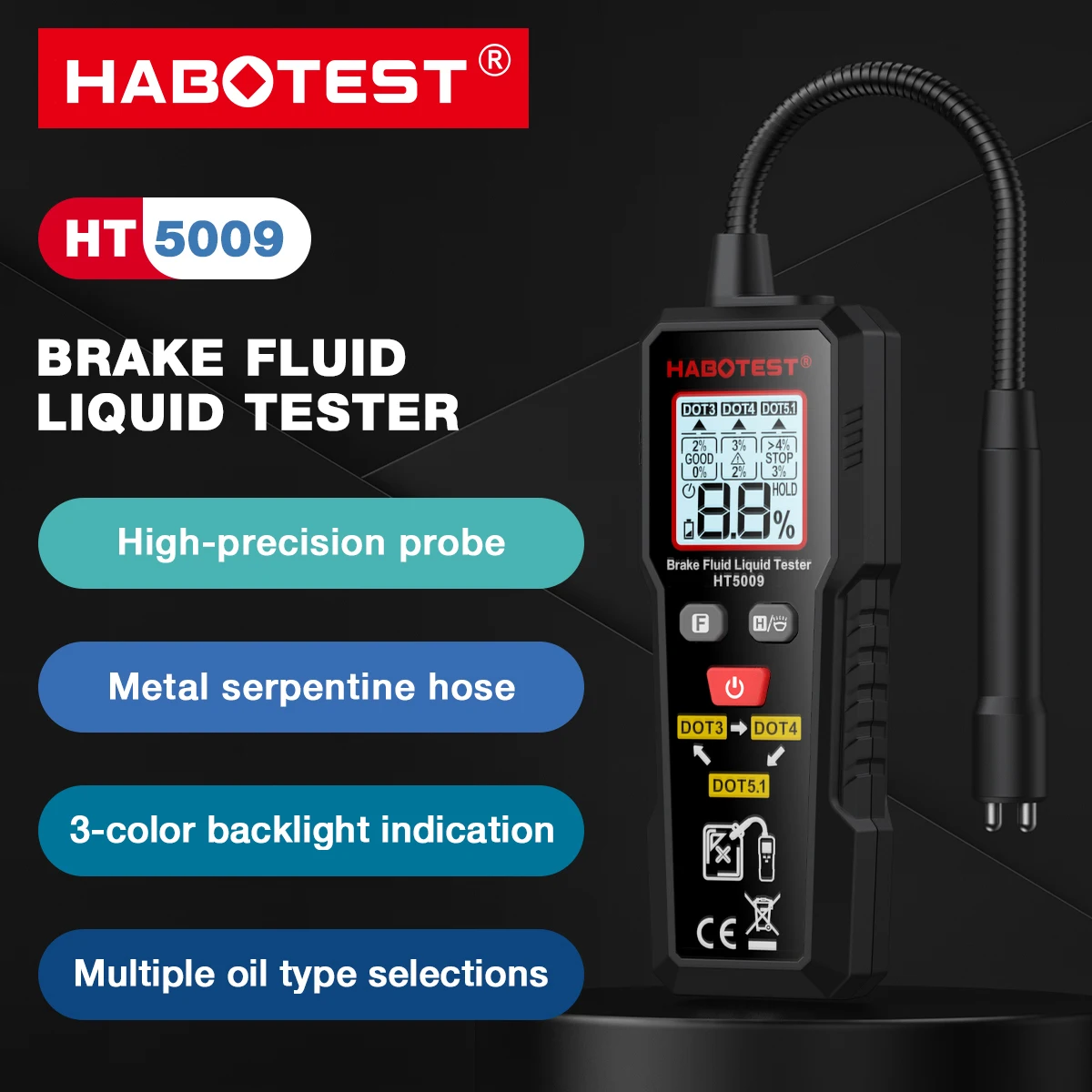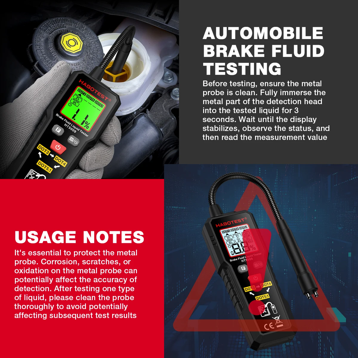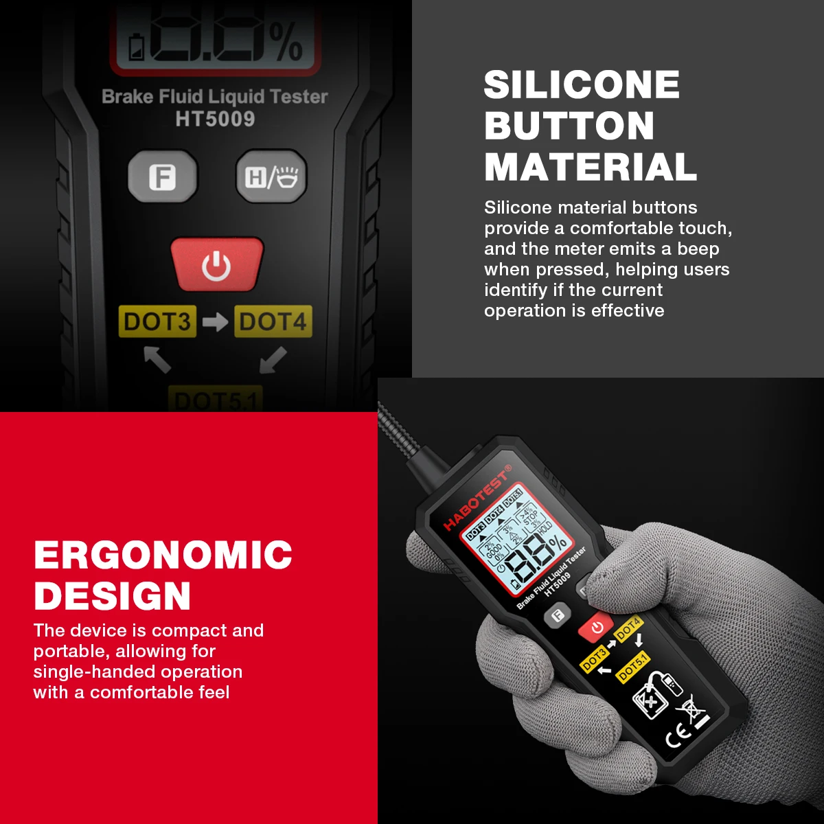 Digital Brake Fluid Tester Auto Car Brake Oil Moisture Detector DOT3/DOT4/DOT5.1 with Backlight Flexible Probe Brake Oil Tester
